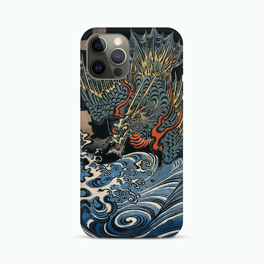 Dragon flying above turbulent waves by Utagawa Kuniyoshi Phone Case