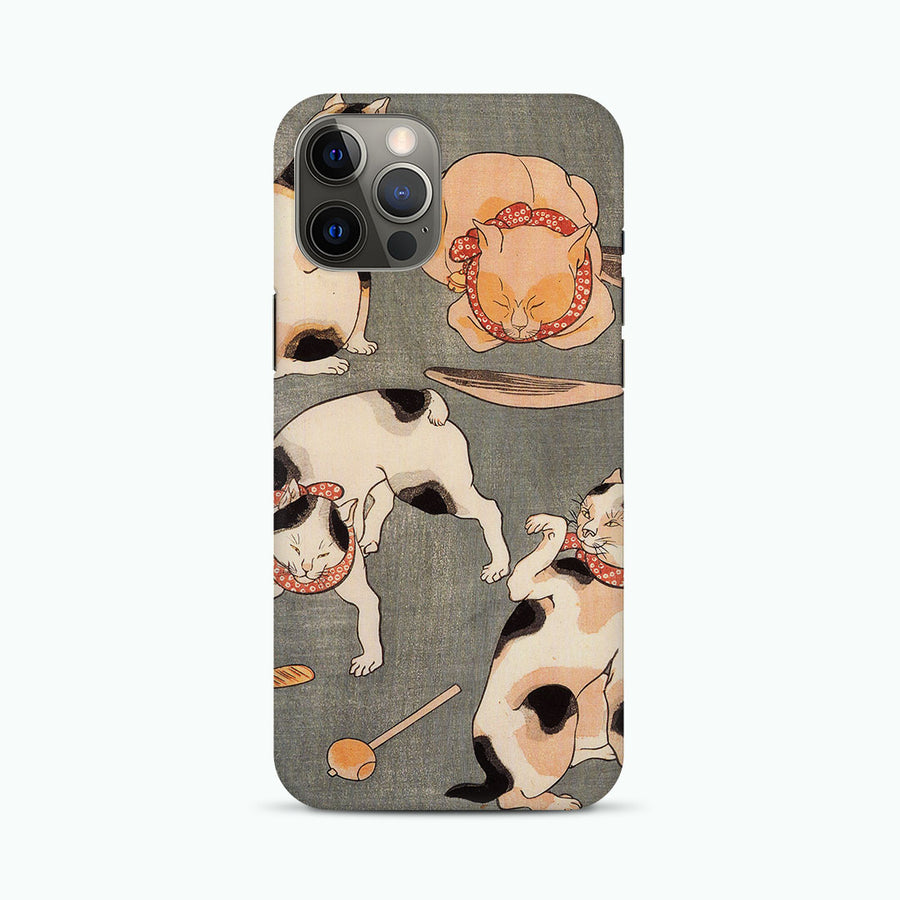 Four Cats in Different Poses Illustrating Japanese Proverbs by Utagawa Kuniyoshi Phone Case